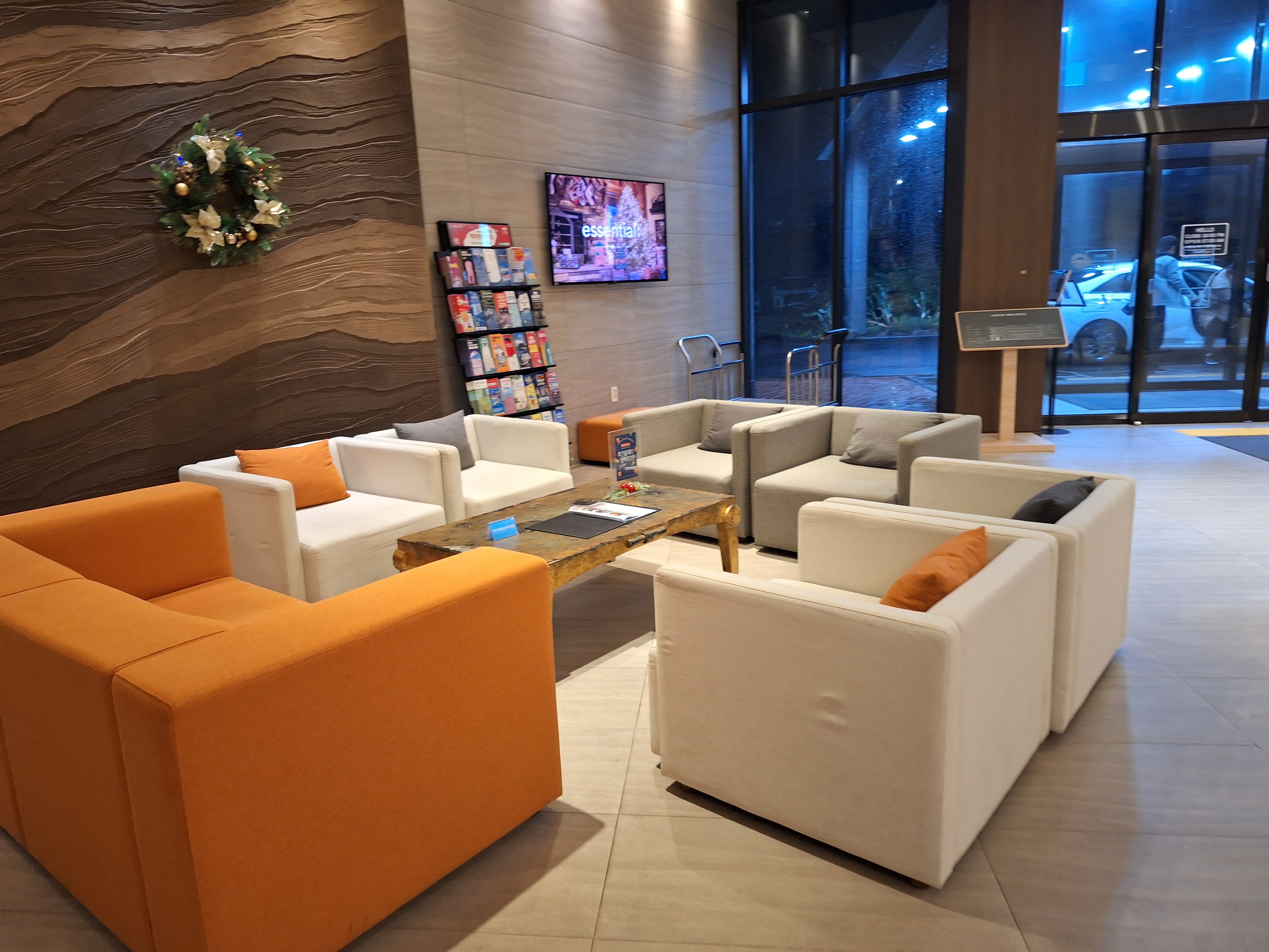 로비에는 앉을 수 있는 소파가 여러 개 준비되어 있고, 핸드폰 충전 포트도 마련되어 있어 잠시 대기하기 편리했습니다.