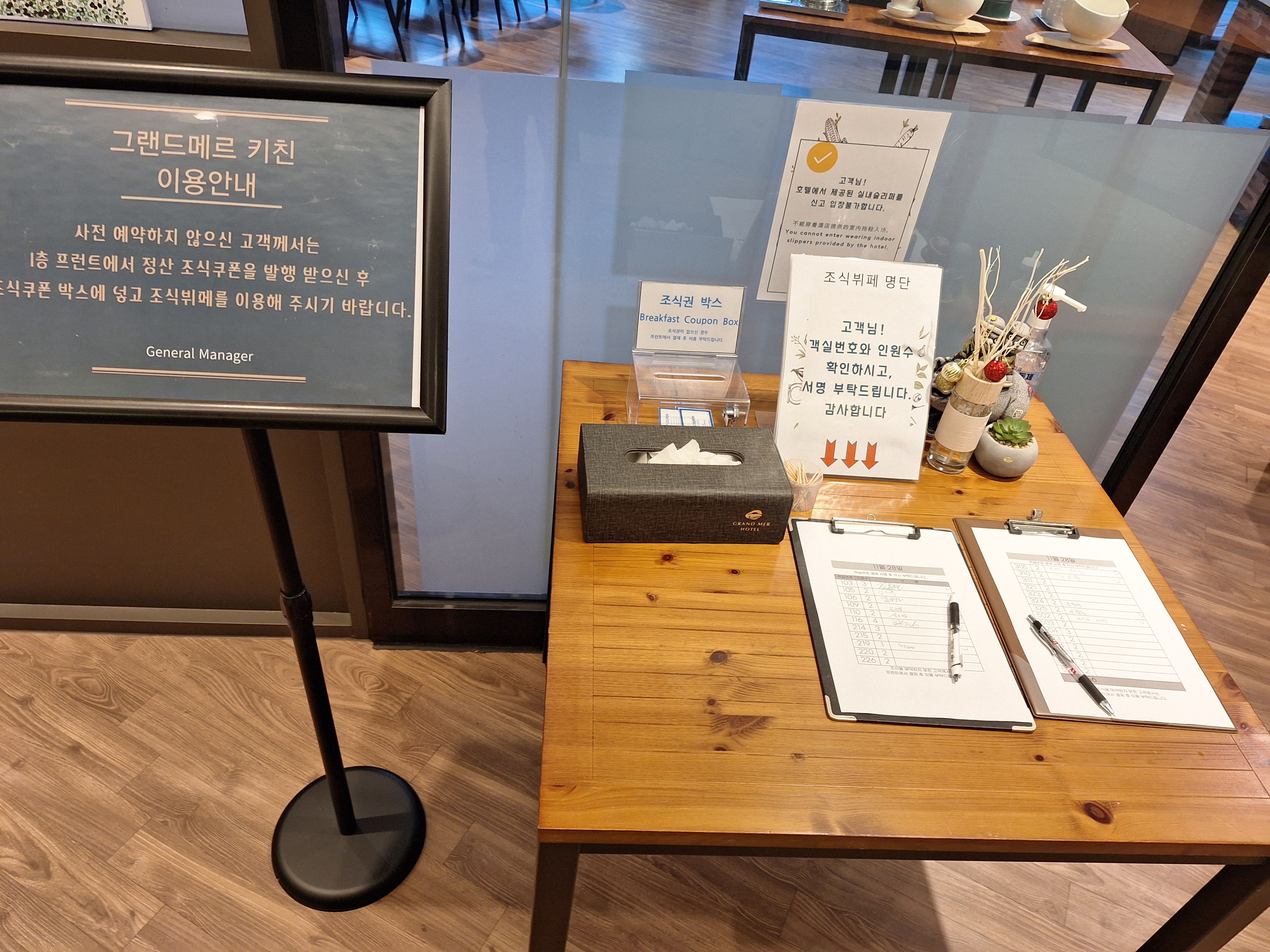 아침 조식을 먹을때는 입구에 서명을 하고 입장을 해야된다.