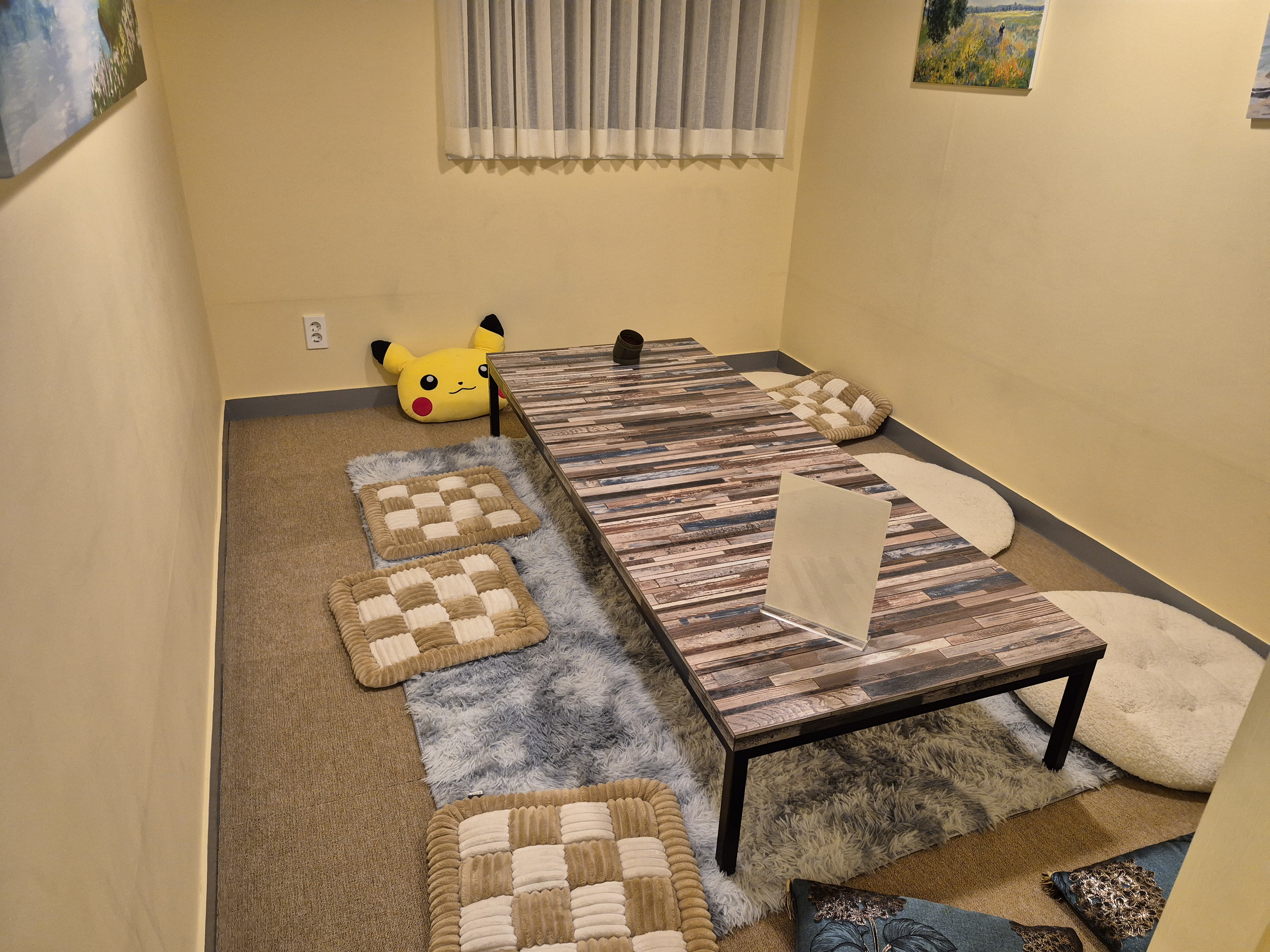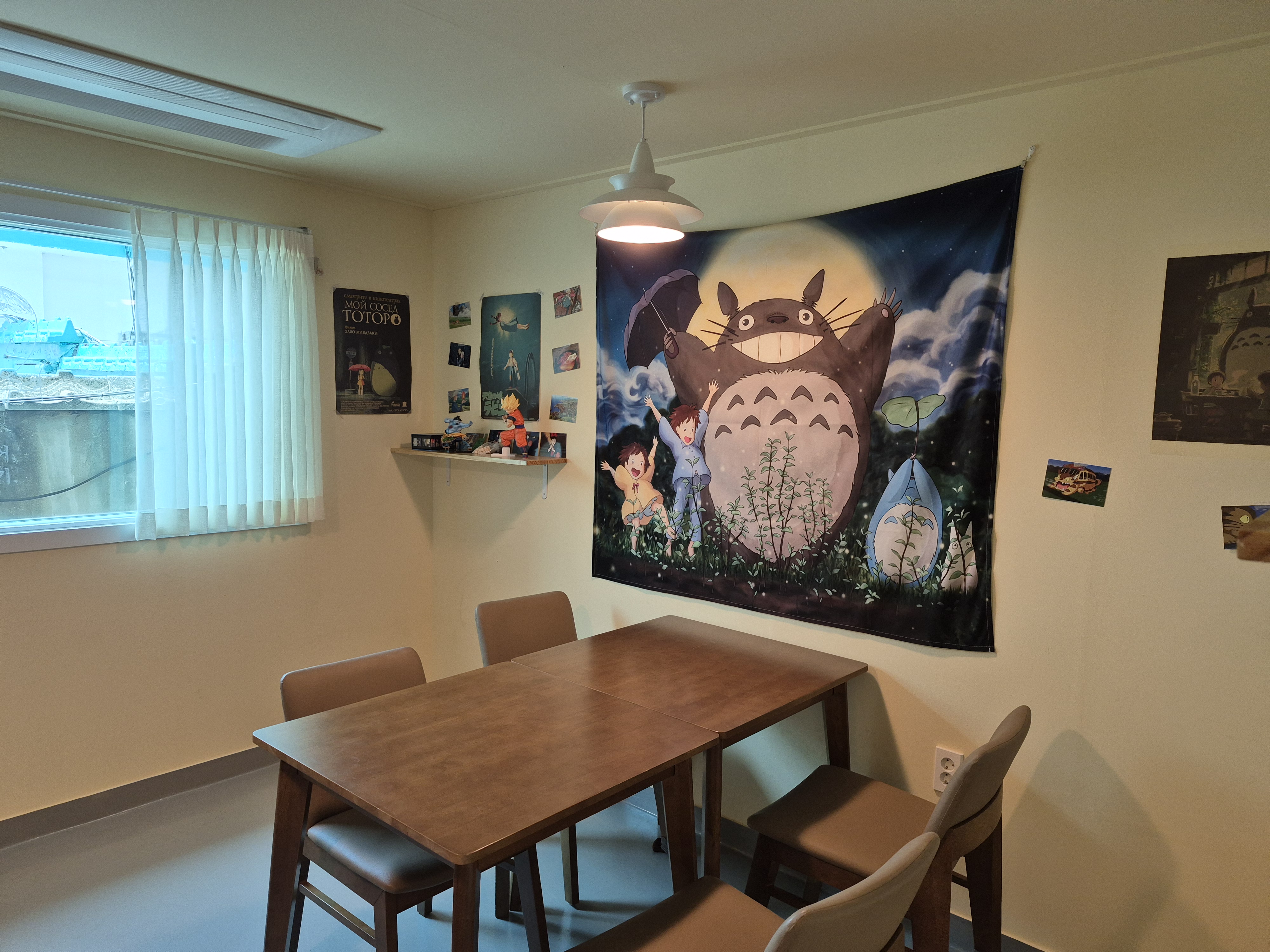 어린시절 즐겨 봤던 지브리 영화의 포스터부터 시작해서 벽지 색깔과 인테리어가 눈에 확들어 왔습니다.