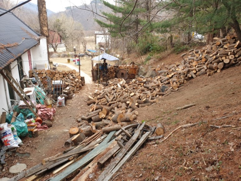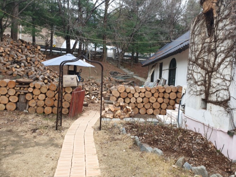 아직 날씨가 쌀쌀할때는 목재를 태워서 난방을 합니다.