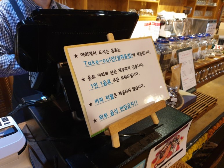 야외에서 드시는 음료는 일회용컵에 제공되며
