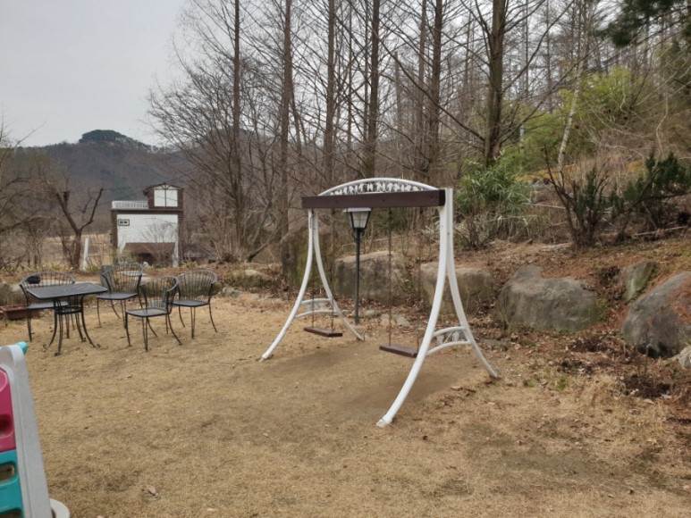 정원 곳곳에는 방문객이 쉴 수 있도록 그네와 벤치가 여럿 놓여 있습니다.