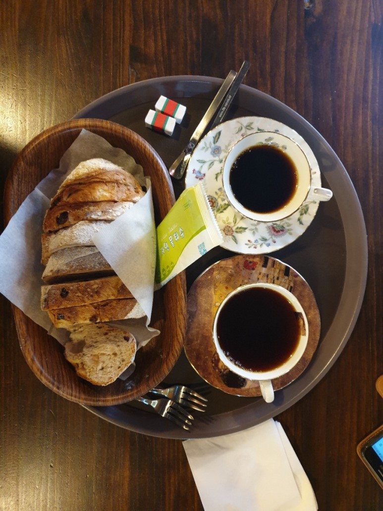 저희가 주문한 커피와 빵이 나왔습니다 맛있게 먹어야겠어요!