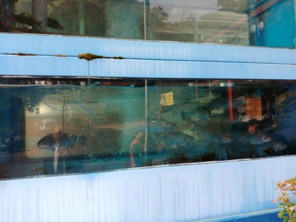 어항을 보면 여러마리의 송어가 헤엄치고 있다.